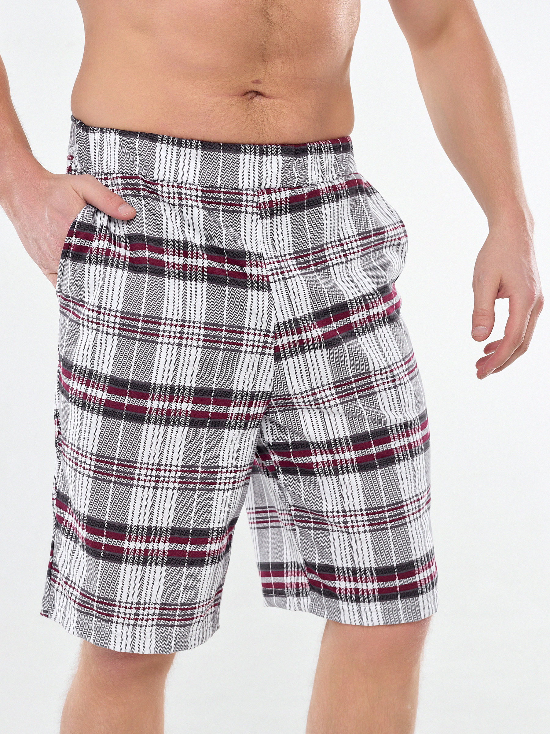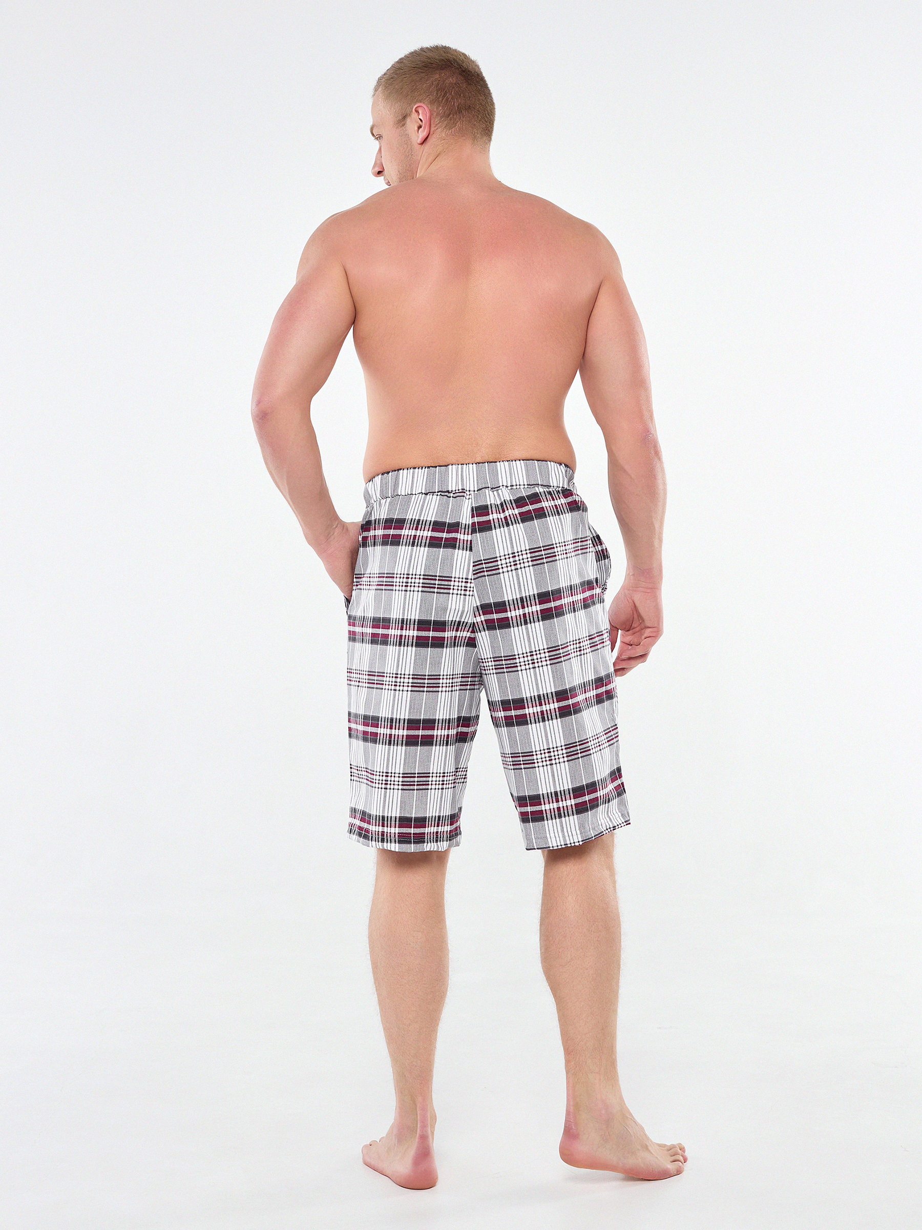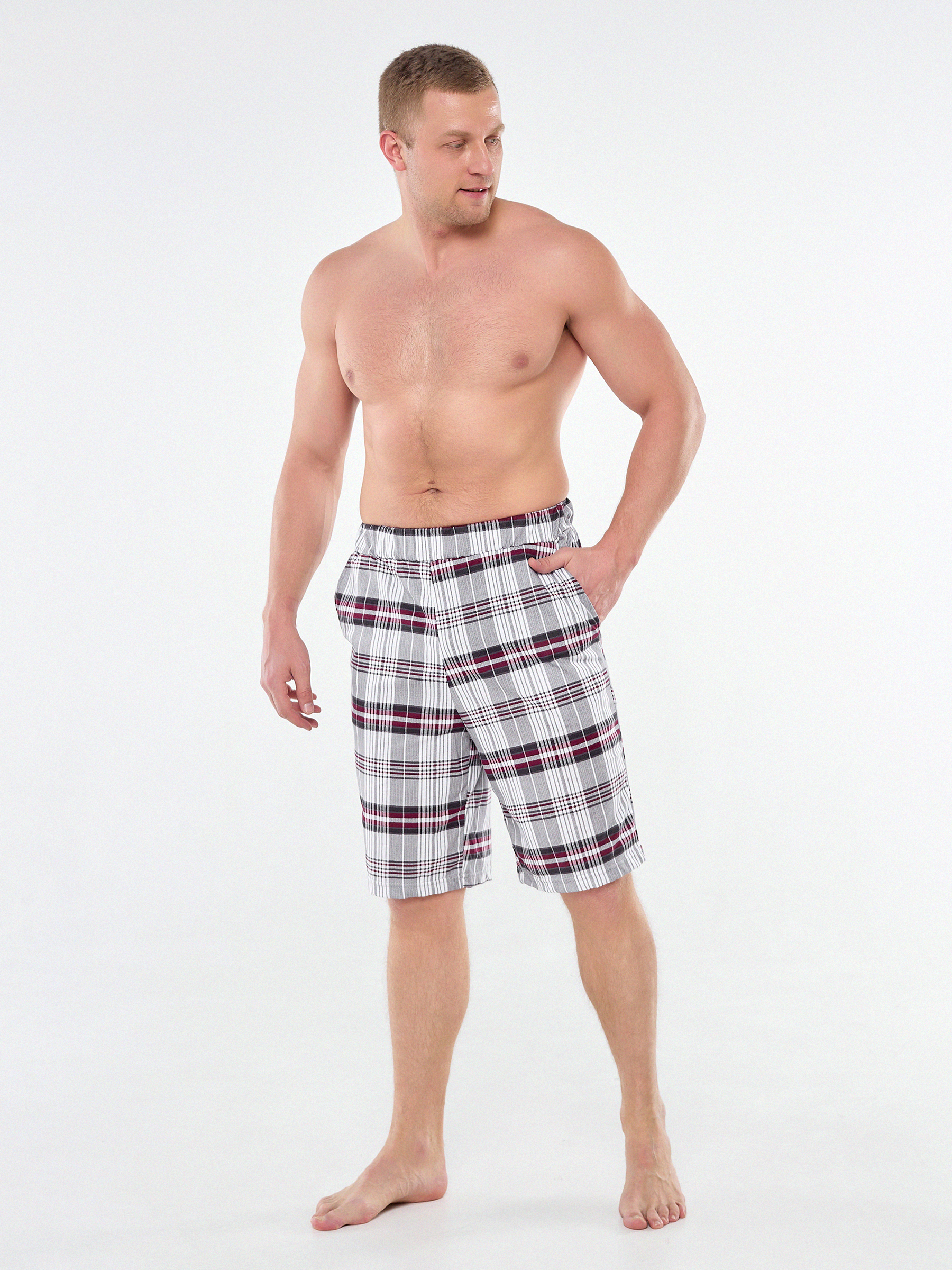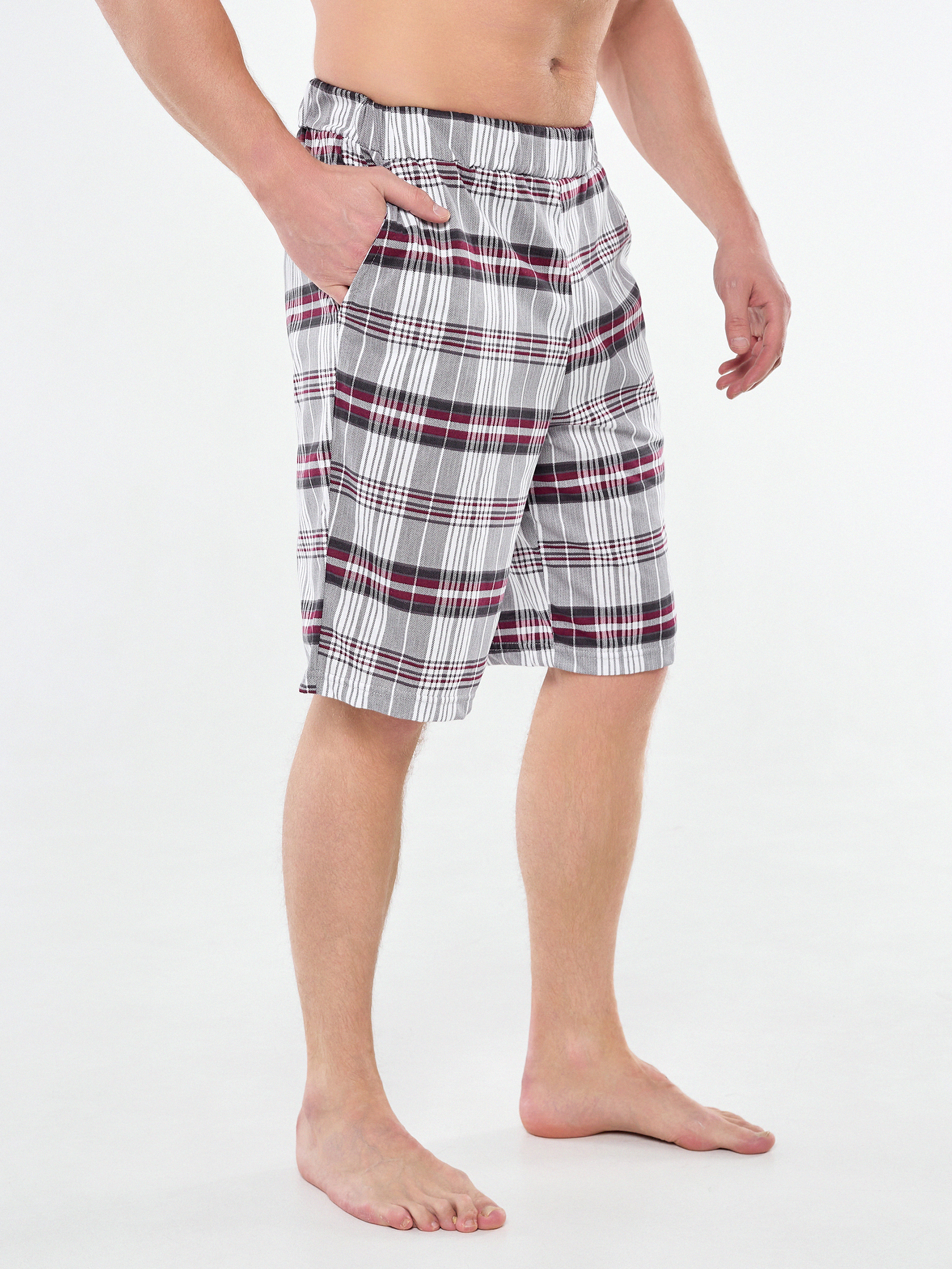 Мужские хлопковые домашние шорты с карманами по бокам.
